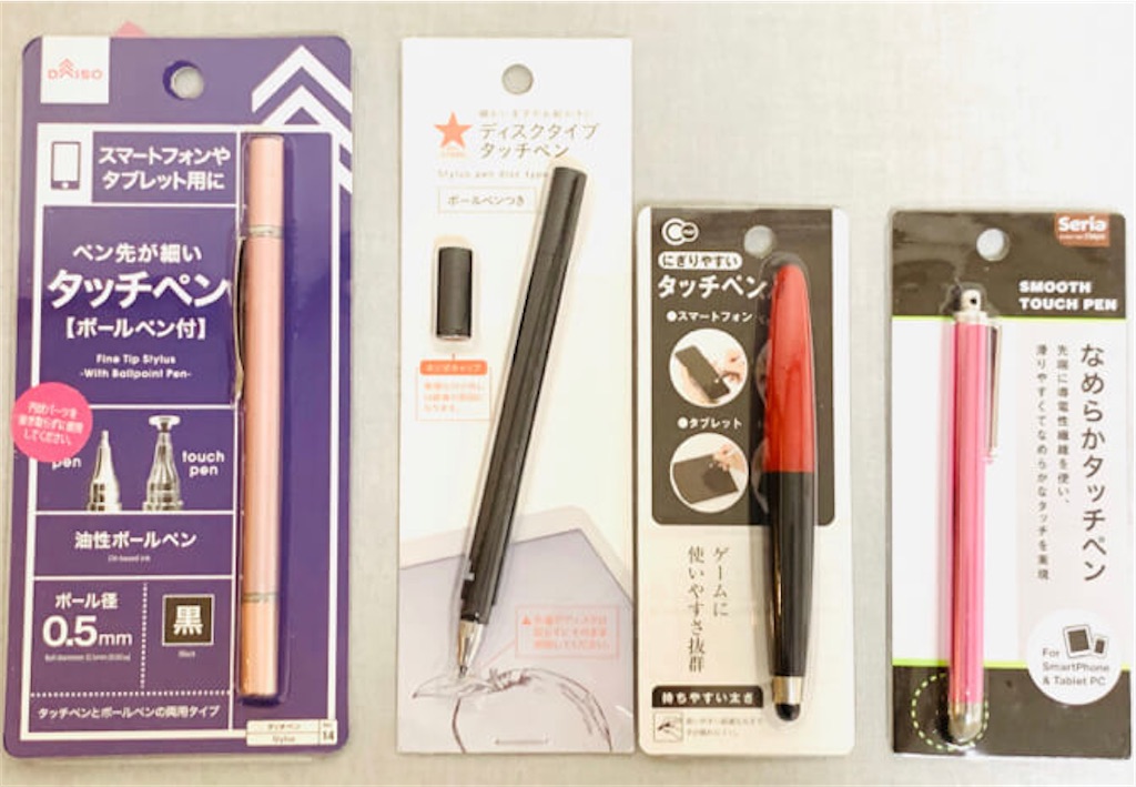 100円ショップにあるスマホのタッチペンは大きく分けて3種類あります。
